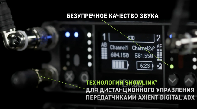 - Приёмник серии ADX с режимом ShowLink Direct позволяет дистанционно управлять передатчиками Axient Digital без необходимости во внешнем оборудовании