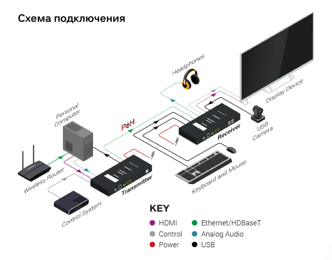 • Обратная совместимость с передающими и принимающими устройствами HDBaseT 1.0 (наименьший знаменатель имеет приоритет)