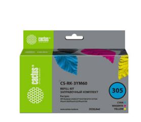 1563089 Заправочный набор Cactus CS-RK-3YM60 многоцветный 3x30мл для HP DeskJet 2710/2120/2721/2722