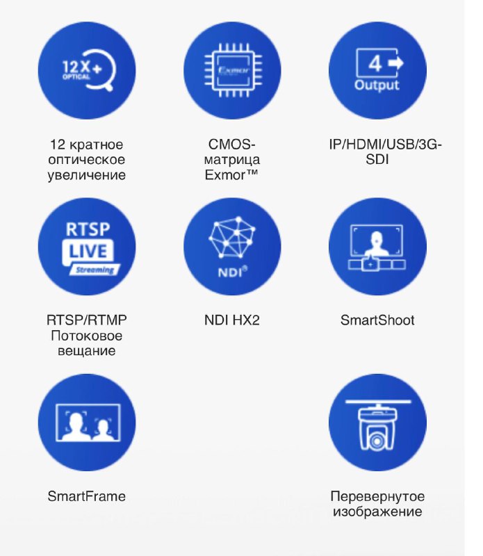 Камеры PTZ310N, поддерживающие передачу данных по протоколу NDI®|HX, обеспечивают гибкость и широкие возможности с помощью всего одного IP-кабеля, упрощая рабочие процессы за счет эффективной и быстрой передачи различных видео- и аудиосигналов. Камеры PTZ310N предоставляют все возможности для производства более богатого и впечатляющего контента для широкого спектра задач, включая студийные постановки, прямые трансляции мероприятий, богослужений, аудиторных лекций, спортивных соревнований и игр, онлайн и дистанционное обучение, многонациональные конференции, тренинги для персонала и многое другое. Наслаждайтесь эффективной и простой настройкой и создавайте всеобъемлющие информационные продукты на основе стандарта NDI.