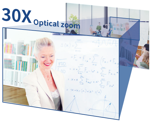 Великолепное качество изображения и 30-кратный оптический зум позволяют снимать кристально чистые кадры в любом классе, зале или центре занятий.
