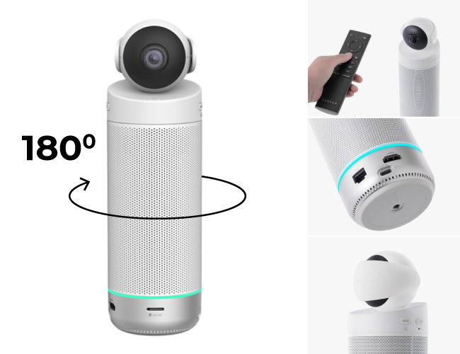 Решение Kandao Meeting S оснащено сверхширокоугольным объективом с рабочим диапазоном 180°, а встроенный алгоритм Kandao Meeting AI 3.0 помогает камере отслеживать активного спикера при помощи системы умного трекинга.
