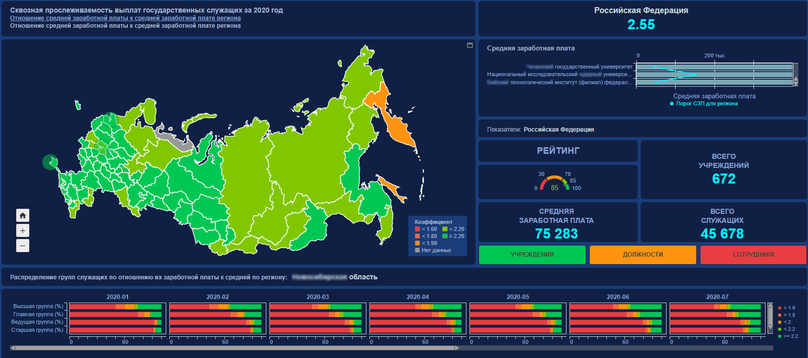Платформа обладает собственным инструментарием создания пользовательских отчетов на основе результатов, полученных в ходе выполнения сложных аналитических проектов. Форматы представления данных включают более 20 наиболее используемых в бизнес-практике вариантов и шаблонов визуализаций. Имеются широкие возможности по выбору и настройке цветовой палитры, типа визуализации, области детализации, включения графических объектов, например, отображения логотипа компании, привязки данных к интерактивным картам и многое другое. Отчеты публикуются как в корпоративной сети, так и в Интернете с возможностью дистанционного и защищенного доступа через веб-браузер.