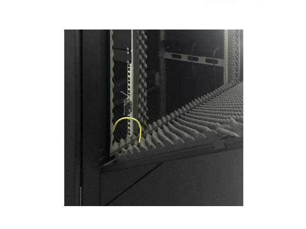 Отличительная особенность шкафа – максимальное снижение шума, производимого установленным в нем ИТ оборудованием, при этом уровень шумоподавления составляет 20-30 дБ (А). Это происходит благодаря использованию уникального комплекса шумопоглощающих и шумоизолирующих материалов. Важную роль играют установленные внутри специализированные вентиляторные блоки с системой пассивного шумоподавления. В блоках находятся по 2 высокооборотистых вентилятора