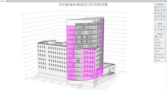 Проектирование на 3D-сцене позволяет быстро и эффективно принять правильные проектные решения в части пространственной конфигурации конструктивных схем зданий и сооружений. Конструктор может визуально оценить проектируемую модель здания на коллизии и, в случае их выявления, устранить в считанные минуты.