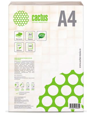 Бумага Cactus ECO предназначена для повседневной работы в офисе, подходит для всех классов копировальных аппаратов и принтеров и обладает всеми необходимыми характеристиками для печати высокого качества.