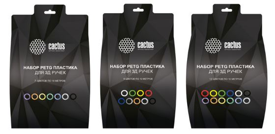 В ассортименте компании CACTUS появились три вида наборов PETG пластика для использования с 3D ручками.
