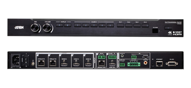 Презентационный коммутатор VP3520 компании ATEN сочетает в себе множество функций – матричного видео-переключателя, 4K-масштабатора, HDBaseT-удлинителя и цифрового сигнального процессора звука, которые объединены в одно компактное устройство, легко устанавливаемое под столом или в монтажную стойку. VP3520 может управлять AV-устройствами, такими как дисплеи и проекторы, а также включает в себя аудиомикшер для удовлетворения требований расширенных приложений.