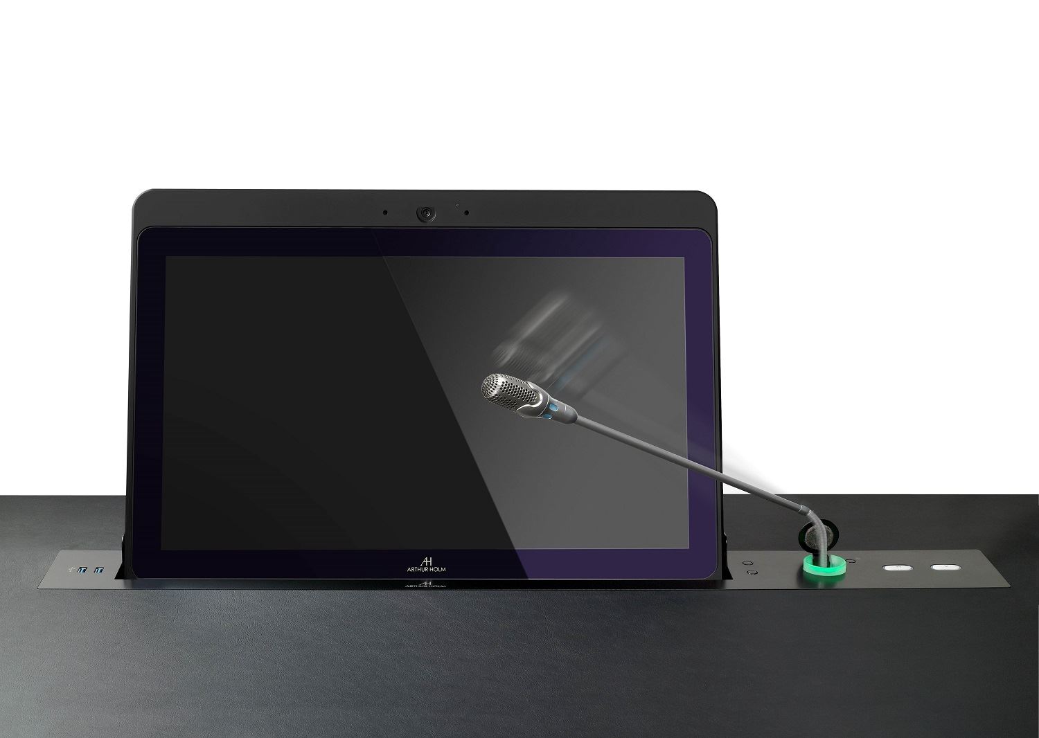 Надежные мониторы серии DynamicX2Talk производства Arthur Holm интегрированы с независимой лифтовой системой для микрофона типа "гусиная шея". Исключительно элегантный и строгий дизайн выдвижных мониторов DynamicX2Talk, где продумана каждая деталь, создан для наиболее требовательной публики для размещения в конференц-залах, кабинетах руководителей и общественных зонах.