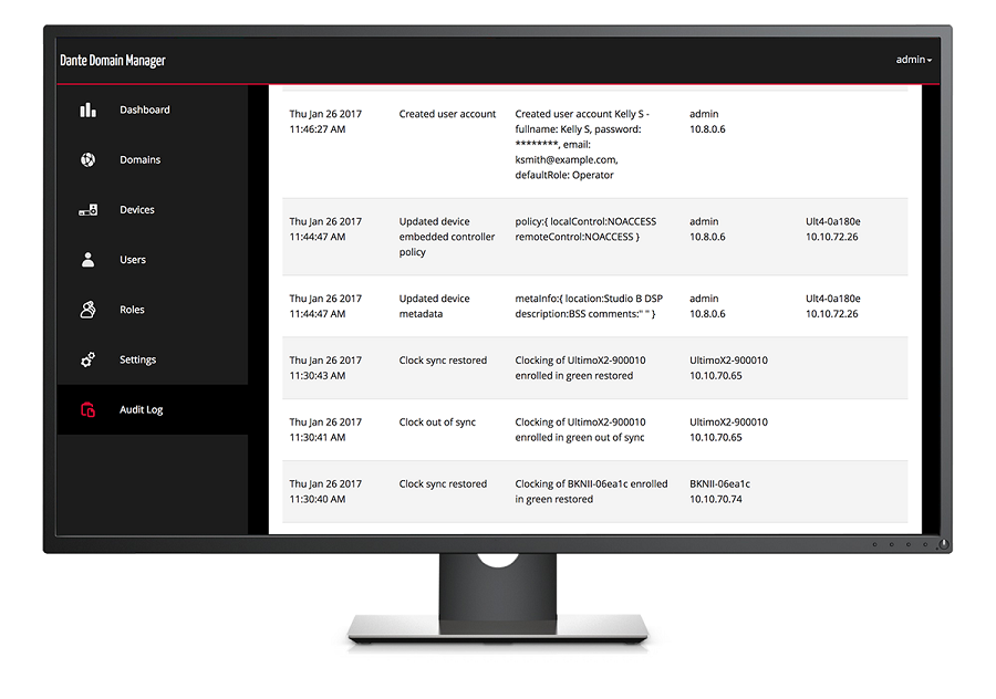 • Адаптивный пользовательский веб-интерфейс: доступ к Dante Domain Manager с любого персонального компьютера или мобильного устройства