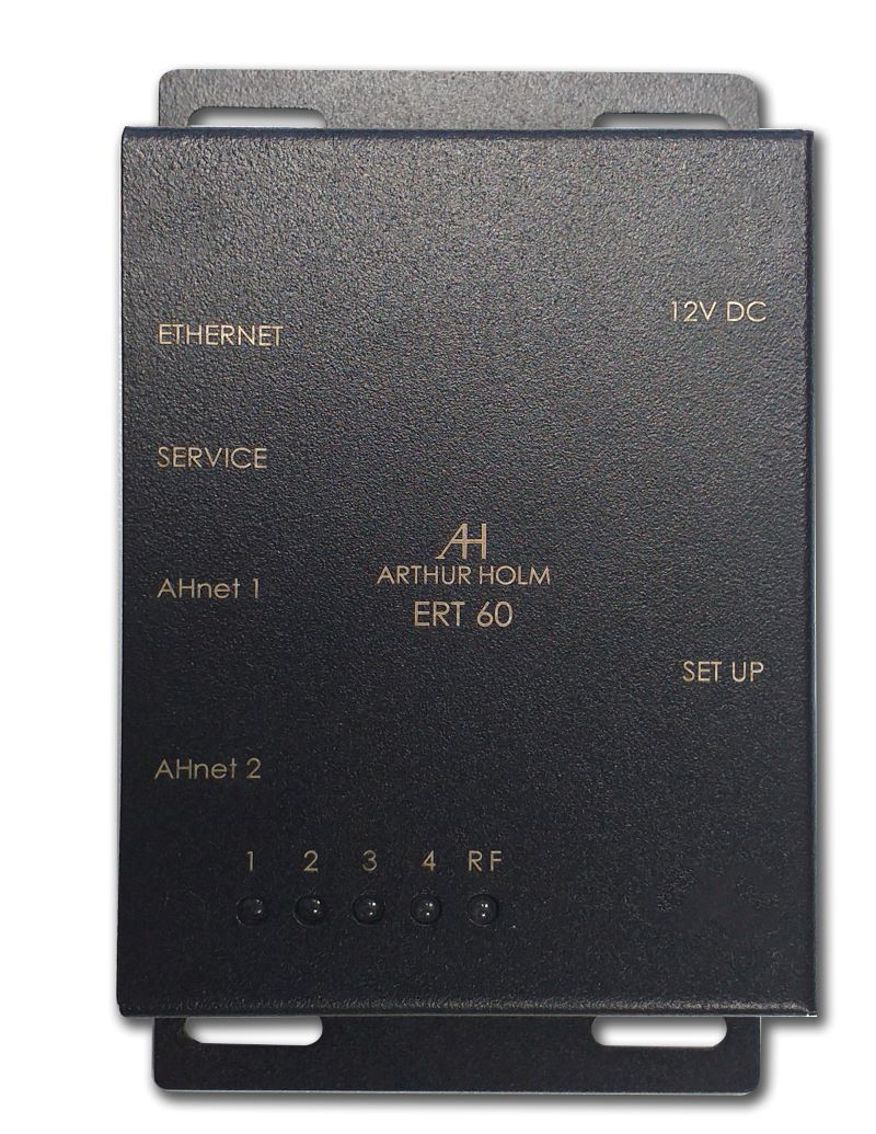 Модель ERT-60 оснащена двумя портами AHnet (RS-422) для управления 60 моторизованными устройствами, имеющими сервисный интерфейс USB для обновления прошивки. Система адресации одним касанием (OTAS) облегчает процесс адресации моторизованных устройств. Первому устройству, которое после установки будет активировано нажатием кнопки на крышке монитора, будет присвоен адрес № 1, следующее будет иметь адрес № 2 и так далее. OTAS доступен на большинстве моторизованных продуктов Arthur Holm.