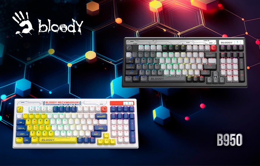 Bloody, бренд компьютерной периферии для геймеров, представил новую модель игровой клавиатуры B950. Новинка получила прочные и легкие свитчи LK Libra. На выбор доступно две расцветки: синий/белый и серый/черный.