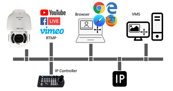 PTZ-камеры BOLIN с двумя полноценными интерфейсами вывода изображения идеально подходят для использования в помещениях и на открытом воздухе, в вещательных, профессиональных AV-системах и на промышленных объектах, поскольку обеспечивают возможность передачи несжатого видео в реальном времени, а также потоковой передачи IP-видео и удаленного управления через IP.