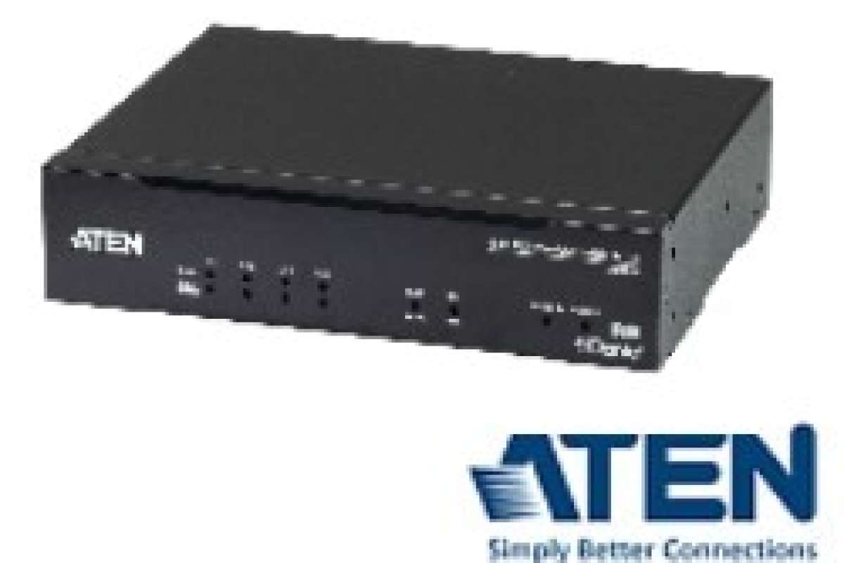 - Встроенный цифровой сигнальный процессор (DSP) – позволяет использовать 24 предустановки и быструю настройку с помощью приложения Audio Wizard, работающего на базе ПК при подключении через LAN, либо устройств линейки VK системы управления ATEN при подключении через LAN или по RS-232