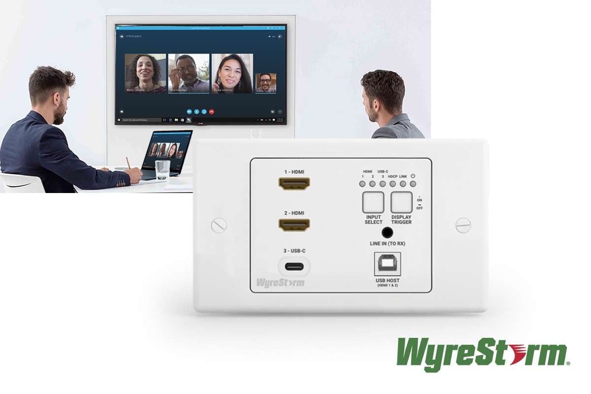 WyreStorm SW-130-TX-UK – настенный передатчик HDBaseT с 3 входами (2 HDMI, USB-C) с USB-хостом и переключателем CEC.