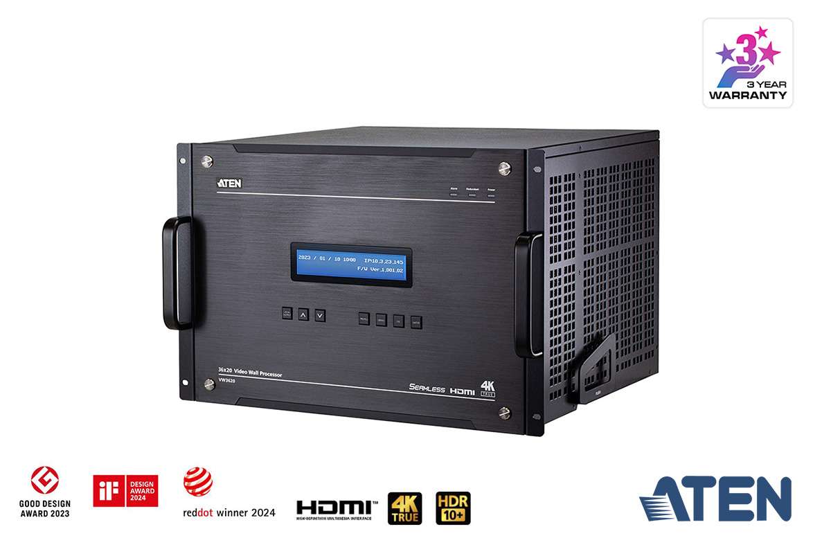 Модель ATEN VW3620 специально разработана для соответствия все более строгим требованиям к производительности системы в критически важных применениях. VW3620, это модульный процессор для видеостен с поддержкой 4K, высотой 7U, с 7 слотами ввода, 5 слотами вывода и 2 слотами для функциональных плат, которые также могут использоваться в качестве слотов для плат ввода. Он поддерживает до 36 источников входного сигнала и 20 терминалов отображения, без задержек обрабатывая сигналы от 4K-источников. Усовершенствованная технология масштабирования 4K при 60 Гц 4:4:4 совместно с возможностью обработки сигнала позволяют VW3620 передавать удивительно точное изображение уровня True 4K. Повышенная надежность работы достигается за счет двойных модулей питания, а также поддерживающих горячую замену карт ввода/вывода, модуля охлаждающего вентилятора и платы процессора управления, допускающую резервирование. Благодаря этому VW3620 гарантирует круглосуточную работу и простоту обслуживания в сценариях использования, не допускающих сбои или отключения системы.
