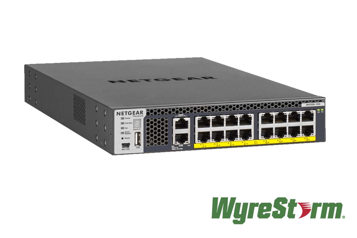 Модель WyreStorm M4300-XSM4316PA-16X имеет 16 портов 10 Гб/с с поддержкой PoE+ до 600 Вт.