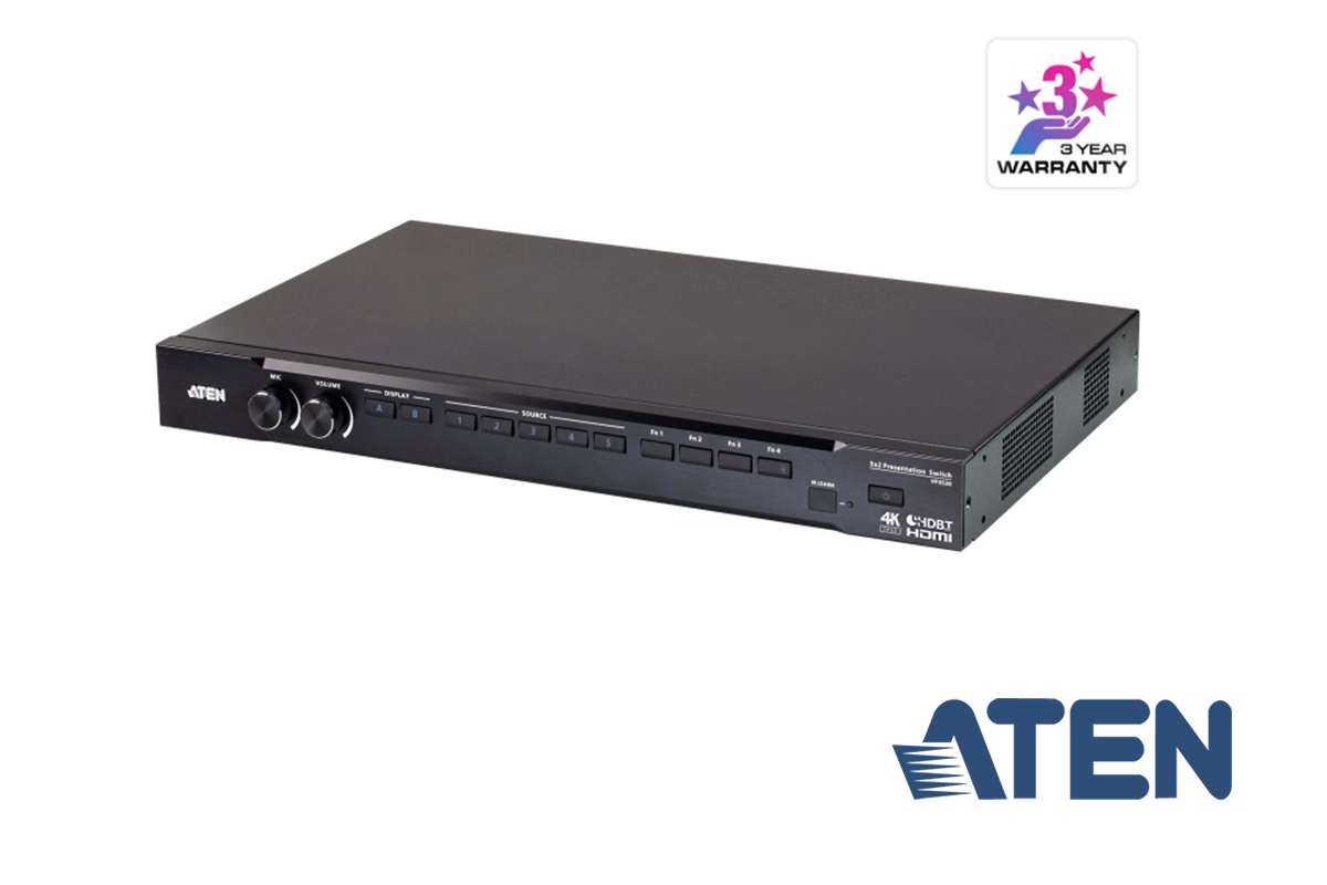 Коммутатор для проведения презентаций VP3520 компании ATEN сочетает в себе множество функций - матричного видео-переключателя, 4K-масштабатора, HDBaseT-удлинителя и цифрового сигнального процессора звука, которые объединены в одно компактное устройство, легко устанавливаемое под столом или в монтажную стойку. Поддерживая разрешение изображения True 4K 4096 x 2160/3840 x 2160 при 60 Гц (4:4:4) и технологию HDR, бесшовный матричный презентационный коммутатор с функцией управления VP3520 гарантирует кристально чистое изображение на двух дисплеях. В коммутаторе VP3520 используется архитектура на основе FPGA-матрицы, благодаря которой поддерживается работа с разрешением 4K при 60 Гц, HDMI и HDCP 2.2, функция Seamless Switch™, а также обеспечивается непрерывность видеопотоков, возможность управления в реальном времени и стабильность передачи сигнала. Встроенный высокопроизводительный 4K-масштабатор легко преобразует различные входные разрешения в различные выходные разрешения экрана, обеспечивая наилучшее качество динамического и статического изображения на двух дисплеях.