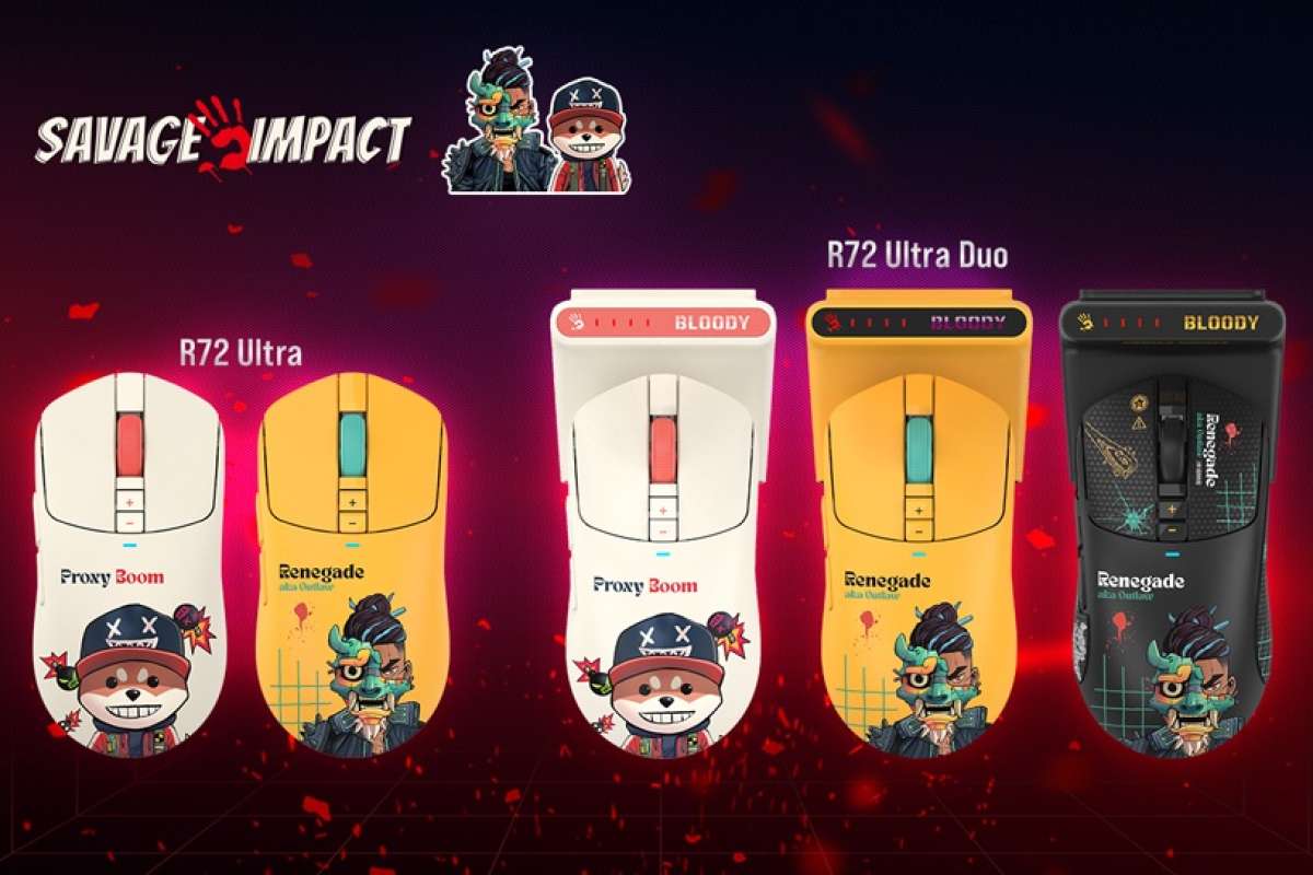 Bloody, бренд компьютерной периферии для геймеров, представил новые расцветки для игровых мышей R72 Ultra и R72 Ultra Duo. В рамках коллаборации Bloody x Savage доступно несколько новых дизайнов, вдохновленных персонажами Renegade и Proxy Boom.