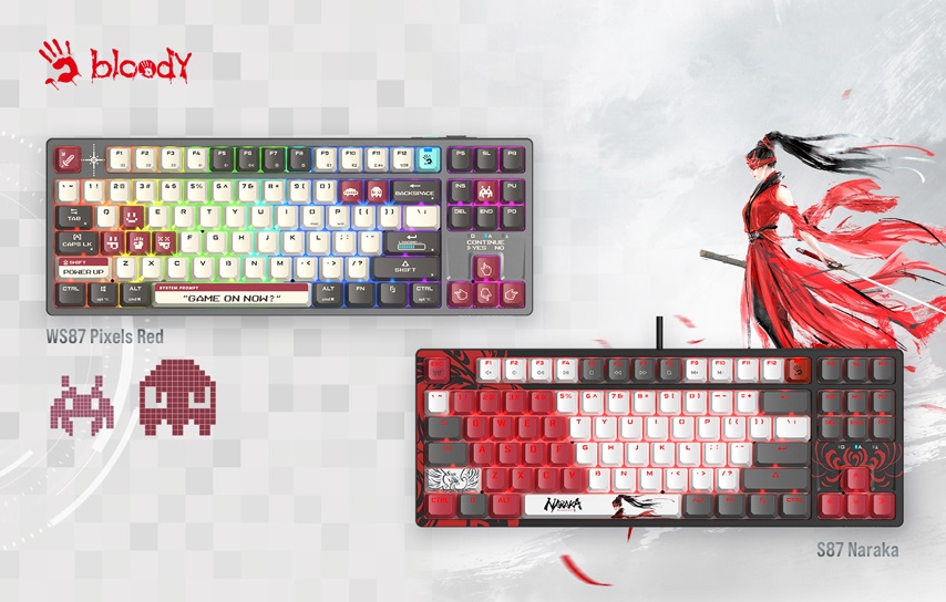 Bloody, бренд компьютерной периферии для геймеров, представил две новые расцветки для клавиатуры S87 и WS87. Первая теперь доступна в стилистике приключенческой экшен-игры Naraka: Bladepoint, вторая – в пиксельном дизайне, отсылающем сразу к целому поколению ретро-игр.