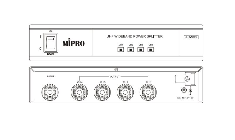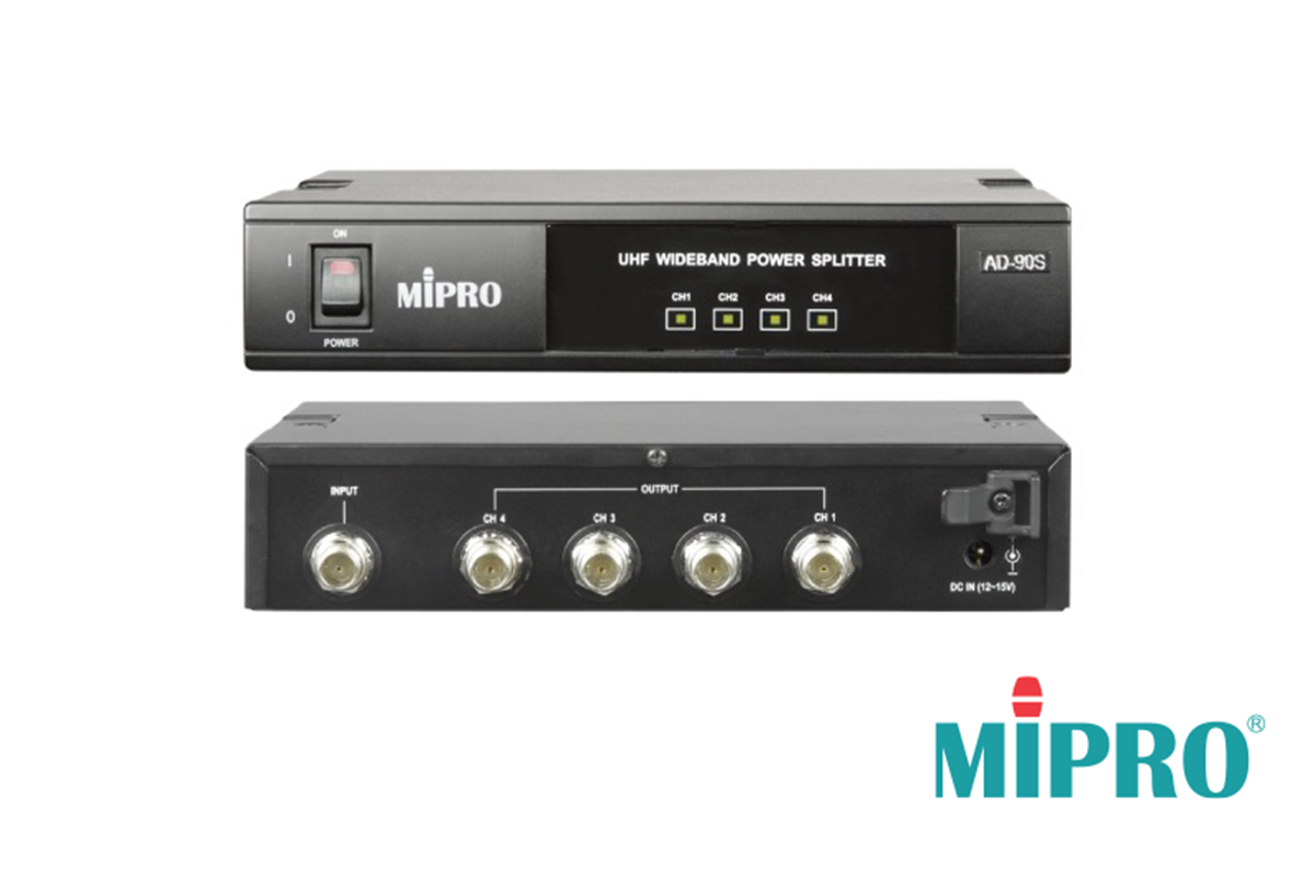Mipro AD-90S предназначен для разделения выходного антенного сигнала на четыре передающие антенны без потери мощности РЧ-сигнала. Это значит, что сигнал, который выходит из передатчика, может использоваться одновременно четырьмя антеннами, что удобно для различных мероприятий и выступлений.