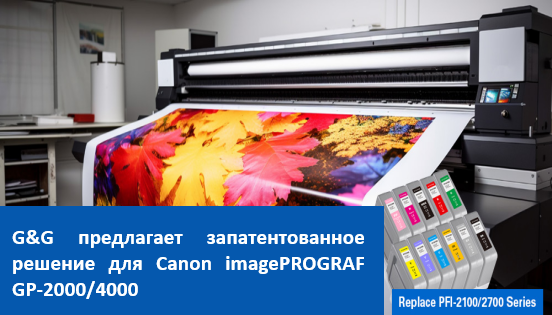Компания G&G выпустила запатентованные сменные картриджи с чернилами, которые оснащены 11-цветными пигментными чернилами. Эти чернила были тщательно разработаны для идеальной совместимости с принтерами Canon imagePROGRAF GP-2000/4000. Теперь эти картриджи доступны для заказа.