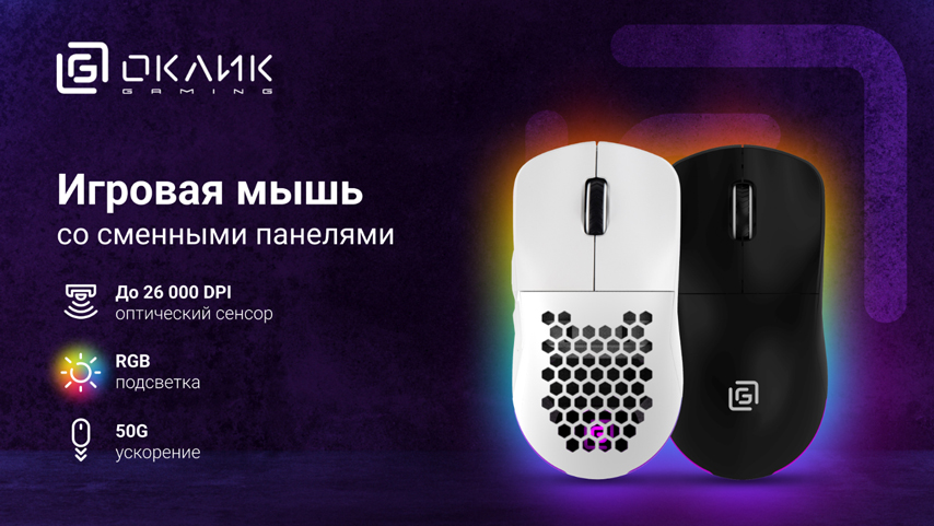 В Merlion доступна новая модель игровой мыши Оклик 900GMW. Мышь оснащена оптическим сенсором Pixart 3395, поддерживающим диапазон DPI от 1200 до 12000. Дополнительное программное обеспечение позволяет повысить DPI до 26000. Высокая частота опроса — до 1000 Гц — делает движения мыши плавными и точными. Ресурс в 50 млн кликов позволяет мыши выдерживать длительные игровые сессии, что будет полезно для геймеров.