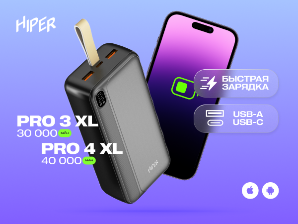 HIPER PRO 3XL и HIPER PRO 4XL идеально подходят для повседневного использования и ситуаций, когда нужен серьезный запас энергии, а рядом нет розетки.