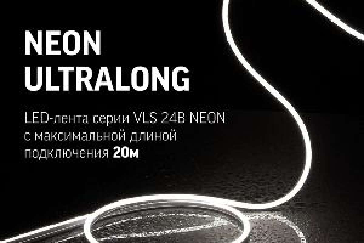 Новая LED-лента Varton серии VLS 24В Neon Ultralong — длиной до 20 метров с питанием только с одного конца. С ней не нужны промежуточные блоки питания, точки подключения и сложные расчеты. Монтаж стал проще, а чистая, непрерывная световая линия – реальностью.