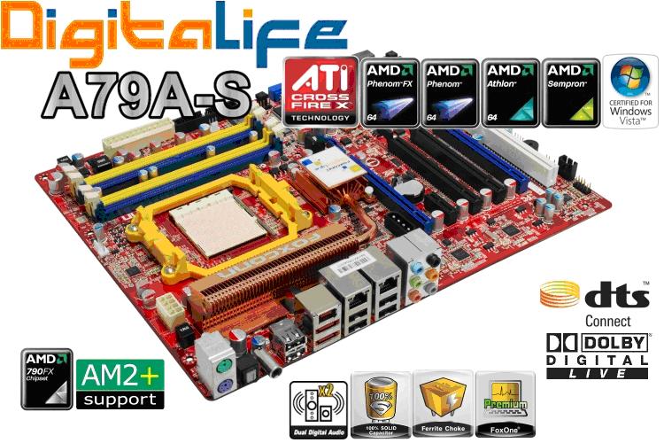 Янтай, Китай, 28 мая 2008 – Сегодня компания FOXCONN представила первую материнскую плату серии Digital Life на платформе AMD - A79A-S, созданную и оптимизированную для процессоров AMD socket AM2+ с технологией HyperTransport™ 3.