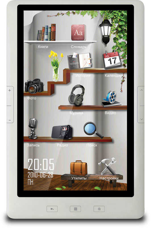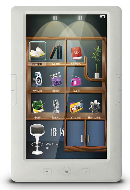 Читалка t700 – электронная книга с цветным TFT-экраном 7,0” (разрешение 800 х 480 точек). Книжкой удобно управлять легким касанием руки. Кроме этого, сенсорный интерфейс дополняет обычный набор механических кнопок на корпусе устройства, который дублирует основные операции с книжкой. С Digma t700 можно не только читать электронные книги, но и использовать ее в качестве фотоальбома, аудио- и видеоплеера для воспроизведения контента в наиболее популярных цифровых форматах.