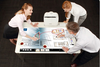 Данные модели проектов позволяют в процессе демонстрации презентационных материалов вносить в них правки прямо на экране или доске, а затем распечатывать изображение, захваченное непосредственно с экрана, сохранять, отправлять по почте и т.д. При подключении к компьютеру появляется также возможность управлять всем его контентом прямо с экрана, используя стилус для перемещения курсора. Проекторы различают действия двух разных стилусов, так что на одной доске одновременно могут работать сразу 2 человека.