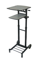 Основная сфера применения–презентации на конференциях, симпозиумах, выставочных инсталляциях. Встроенная пневматическая пружина позволяет легко регулировать высоту, обеспечивая установку проектора на необходимом для максимально комфортного просмотра уровне. Две складывающиеся полки позволяют установить на столике как проектор, так и ноутбук, а также расположить презентационные аксессуары или документы.