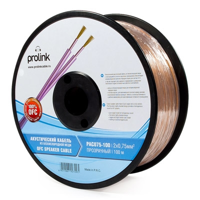 Как известно профессионалам, самый главный элемент в акустическом кабеле – центральный проводник. Чем лучше материал, тем чище будет передаваемый по нему сигнал. Чем больше сечение – тем более мощные колонки можно будет подключить к усилителю. Одним из лучших материалов является бескислородная медь OFS 99,99% степени очистки, используемая в продукции PROLINK данного типа. Внутреннее изолирование профессиональных акустических кабелей также сделано из качественного материала: диэлектрик изготовлен на основе полиэфира (РЕ), оболочка – из прозрачного поливинил хлорида (PVC). При этом специальная технология плетения семи внутренних жил, используемая PROLINK, увеличивает площадь соприкосновения, снижая индуктивность кабеля и затухание сигнала. Сечение акустических кабелей PROLINK представлено в трех размерах: 2 х 0,75 мм; 2 х 1,5 мм и 2 х 2,5 мм.