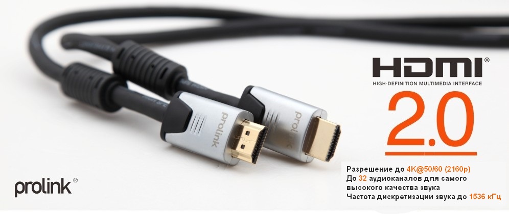 ООО «Дистрибуторская компания Графитек», Москва, 3 октября 2013 – Бренд профессиональной кабельной продукции PROLINK, эксклюзивно представленный на территории России дистрибуторской компанией «Графитек», официально заявил о соответствии кабелей HDMI только что принятому и обнародованному стандарту 2.0. Организация HDMI Forum Inc. анонсировала выход официальной спецификации HDMI 2.0 на крупнейшей выставке бытовой электроники IFA (нем. Internationale Funkausstellung Berlin), прошедшей в Берлине.