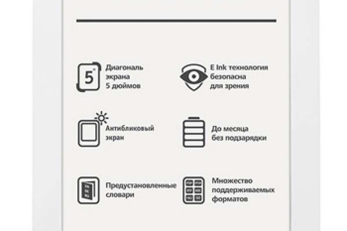 PocketBook 624 может похвастаться современным пользовательским интерфейсом и мультисенсорным управлением, а также аппаратными кнопками перелистывания для максимально комфортного чтения. Встроенный аккумулятор емкостью 1300 мАч обеспечит до месяца работы без подзарядки.