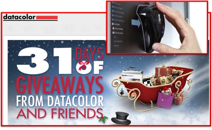 Каждый профессиональный пользователь международного сайта Datacolor.com, посетивший его в декабре, стал участником лотереи. Фотографы, видеооператоры и графические дизайнеры по всему миру выигрывали каждый день призы. Так, например, в качестве подарков были представлены: Spyder4ELITE и SpyderCAPTURE PRO, а также продукты партнеров DxO Labs, Fujifilm, Gura Gear, Lowepro, MyPix2, SanDisk, Tamron, Wacom, Zenfolio.