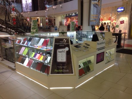 Новый магазин PocketBook расположился в холле торгового центра, на «островке» площадью 10 м². Это самый большой «остров» среди тех, которые занимают фирменные магазины компании. На шести демо-стендах площадки представлены электронные книги и аксессуары, об особенностях которых посетителям магазина подробно расскажут продавцы-консультанты. Также они помогут сменить программное обеспечение в устройстве, установить дополнительные словари, конвертировать книги в поддерживаемые ридером форматы, предоставить помощь в настройках и регистрации устройства.