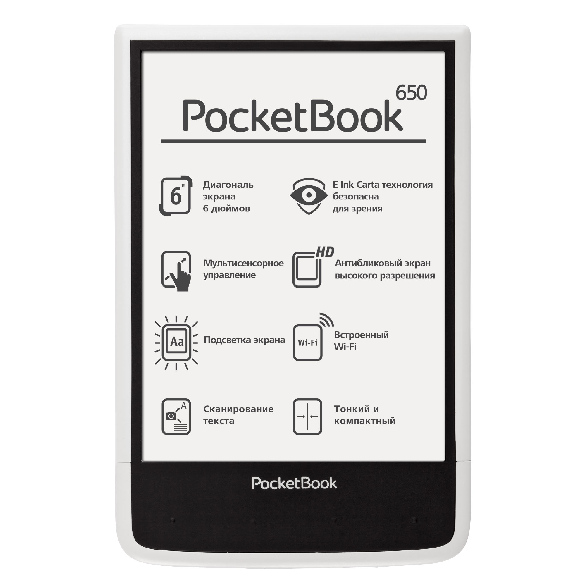 PocketBook 650 оснащен 6-дюймовым дисплеем нового поколения E Ink Carta™ с HD разрешением 1024 x 758 пикселей и 212 dpi. Он отображает информацию контрастно и четко. Помимо встроенной в заднюю панель фотокамеры в устройстве имеется предустановленное приложение, позволяющее распознавать отснятый текст и конвертировать его в редактируемые форматы. PocketBook 650 также может считывать и распознавать bar- и QR-коды.