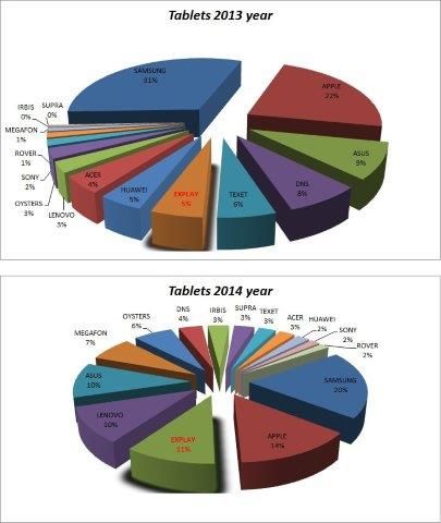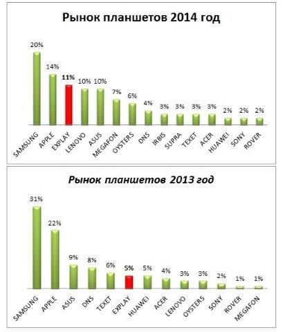 По данным аналитической компании GfK в 2014 году российский бренд Explay занял третье место по продажам планшетов в России, первое и второе место заняли Samsung и Apple. Это важное событие для российского рынка планшетов подтверждает рост локальных производителей. Так общая доля В-брендов в 2014 году составила порядка 65%.