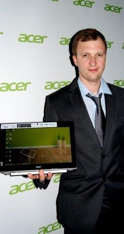 Aspire Switch 10Е выполнен в том же форм-факторе, что и 11V, и также использует крепления Snap Hinge 2, выполнен в разноцветных корпусах с фактурной поверхностью, но получил меньшие размеры и экран с диагональю 10 дюймов. Как отметил Тимофей Соболевский (на фото), PR-менеджер российского представительства Acer, новинка интересна оптимизированной эргономикой, в частности, у системы «заниженный» центр тяжести, что упрощает использование «одиннадцатого» в режиме ноутбука, а также реализована конфигурация шарнира, которая придает клавиатуре наклон в 5 градусов, что улучшает эргономику и особенно заметно при активной работе с текстами.