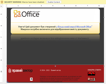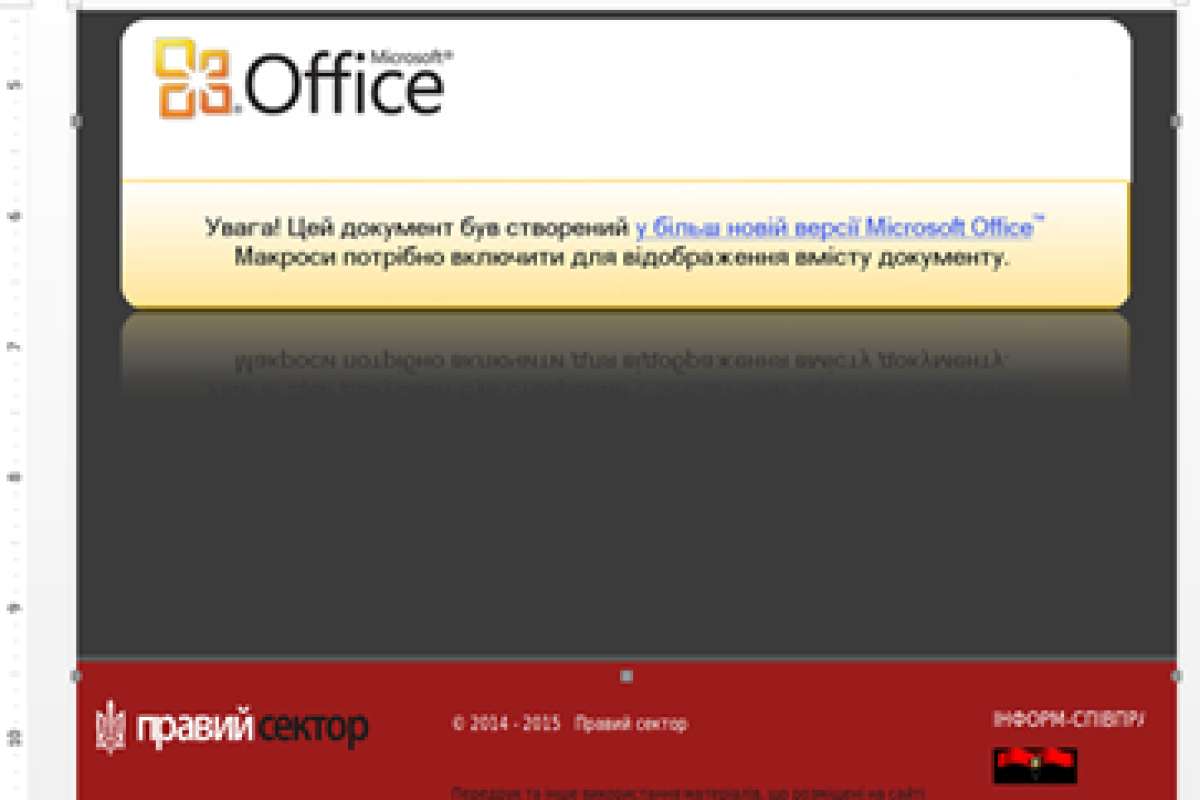 Получая такой документ, пользователь видит уведомление о необходимости подключить макрос для просмотра содержимого. Выполнение этой рекомендации приводит к запуску в системе троянца BlackEnergy.