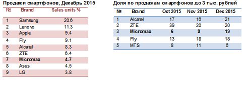 Компания стремительно усилила свое присутствие в категории смартфонов до 3 тысяч рублей, увеличив свою долю с 6% в октябре до 19% в декабре 2015 года. По данным GFK, в этой категории Micromax — третий по объемам продаж игрок. В сегменте двухъядерных смартфонов индийский производитель также показал высокие результаты. В декабре доля Micromax составила 8,1%, что на 4,2% больше по сравнению с октябрем 2015 года.