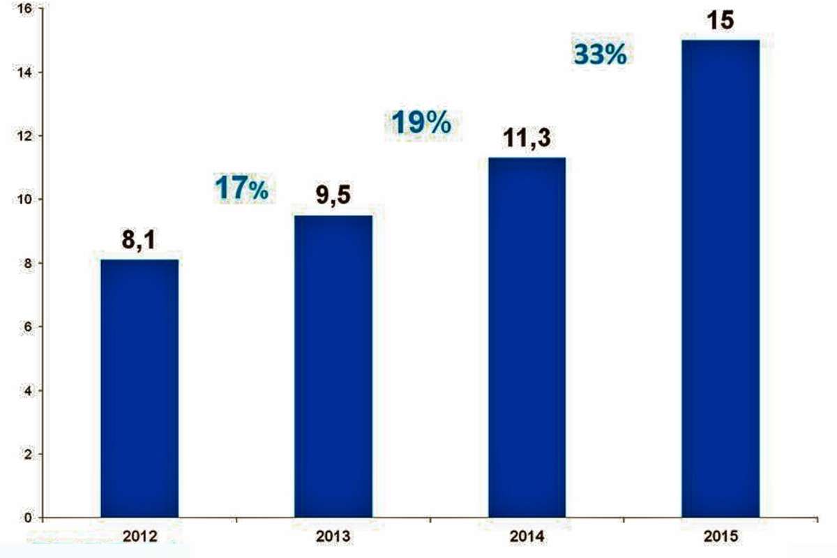 30 марта основные итоги деятельности в минувшем году озвучил онлайн-гипермаркет Ozon.Ru. Его генеральный директор Дэнни Перекальски сообщил, что в 2015 г. объем продаж Ozon.Ru составил 15 млрд. руб., что на 33% выше аналогичного показателя 2014 г. (11,3 млрд. руб.). При этом, по итогам 2015 г. объемы продаж товарной группы «Бытовая техника и электроника» (БТиЭ) увеличился, по сравнению с 2014 г., на 32% и составил 26% от общего объема продаж компании.
