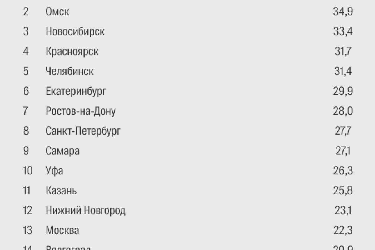 Первое место заняла Пермь. В городе 36 салонов сотовой связи на 100 тыс. жителей. Ближе всего к лидеру подобрались Омск и Новосибирск, кроме них в топ-5 вошли также Красноярск и Челябинск.