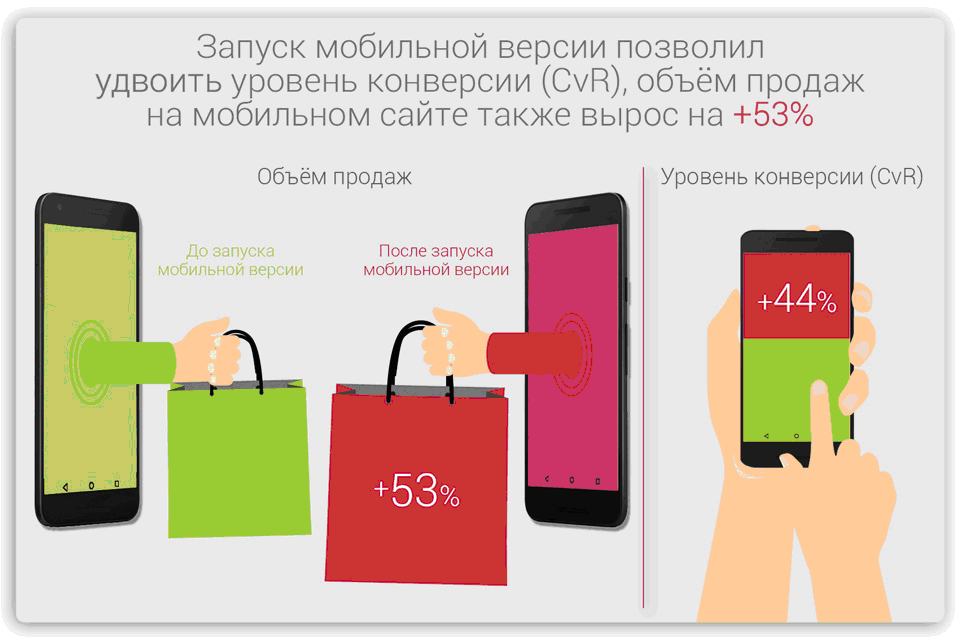 Высокая конкуренция в сфере ритейла подталкивает компании к использованию всех доступных каналов взаимодействия с пользователями. Им приходится подстраиваться под потенциального клиента, который привык в повседневной жизни использовать сразу несколько устройств. Смартфон все чаще становится одним из основных каналов для получения конверсии, когда человек хочет выбрать и купить товар прямо сейчас, найти необходимую информацию, чтобы потом совершить покупку с компьютера, или же почитать отзывы, находясь непосредственно в магазине. Поэтому создание удобных для пользователей мобильных сайтов открывает бизнесам новые возможности.