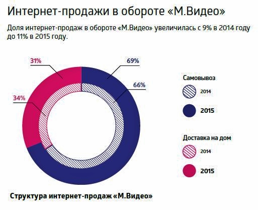 Руководитель департамента интернет-маркетинга и электронной коммерции Роман Горшков добавляет: «За 2015 год на нашем сайте было сделано более 25 млн. поисковых запросов, что на 17% выше показателя 2014 г. В 2015 г. 38% покупателей совершали покупки с мобильных устройств (27% с мобильных телефонов и 11% с планшетов), а доля мобильных покупок серьезно увеличилась (рост год к году составил 40%). Мы соответствуем ожиданиям наших покупателей и активно продолжаем развивать интернет-направление: в 2015 году онлайн-продажи сети выросли на 12,5% по сравнению с предыдущим годом, несмотря на высокую сравнительную базу. А доля интернет-заказов в обороте компании достигла 11% и продолжает расти».