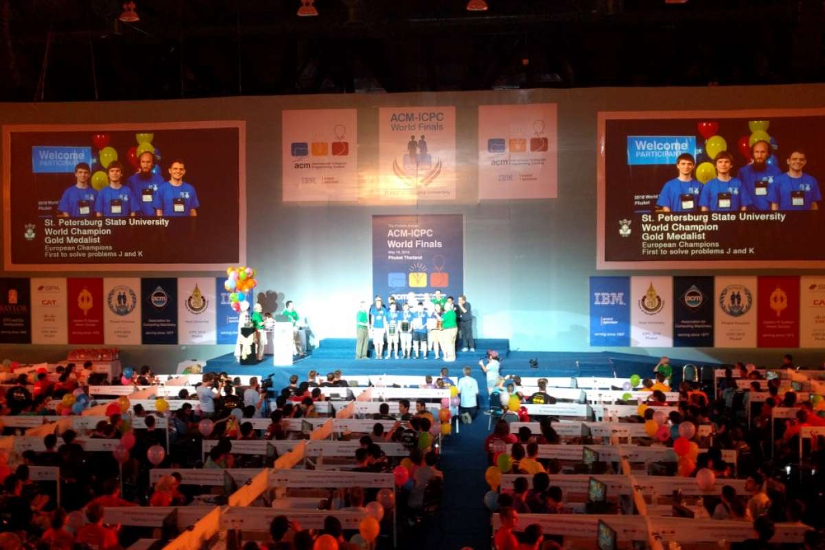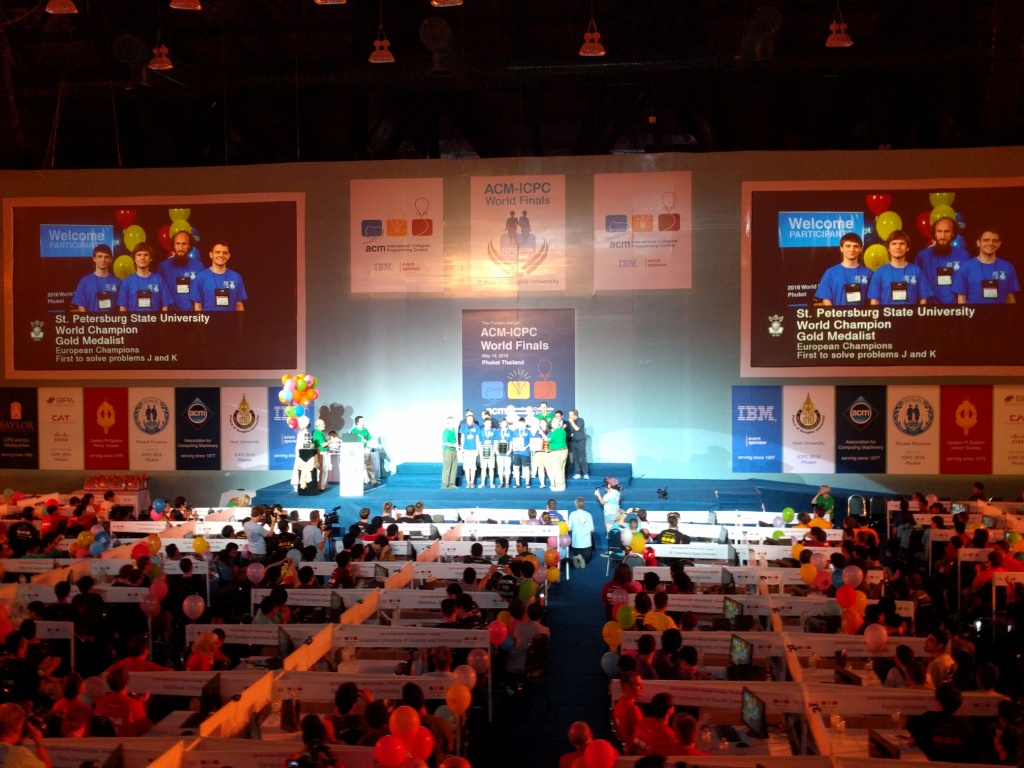 * В Таиланде в четверг завершились финальные соревнования ACM ICPC — чемпионат мира по программированию. Абсолютное первенство завоевала команда Санкт-Петербургского университета. У российских команд пять медалей из 12, из них две золотых, две серебряных и одна бронзовая. В финале ICPC, напомним, вручаются по четыре медали каждого достоинства.