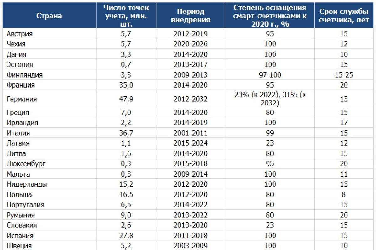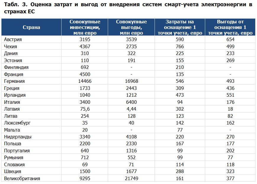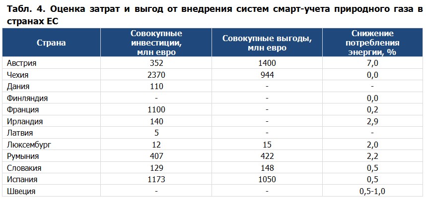 Совокупные выгоды от внедрения таких систем смарт-учета для указанных стран оцениваются до 27 млрд Евро, снижение потребления энергии в зависимости от страны оценивается в