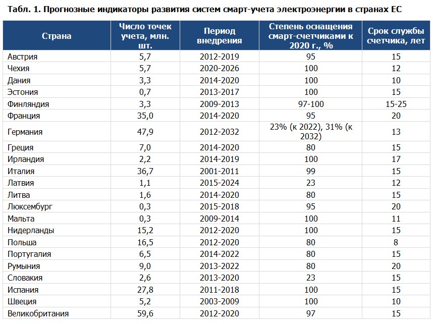 Например, в качестве одной из основных задач энергетической политики стран ЕС, определенных в «Директиве по электроэнергии», является оснащение к 2020 году не менее 80% потребителей «интеллектуальными» измерительными системами.